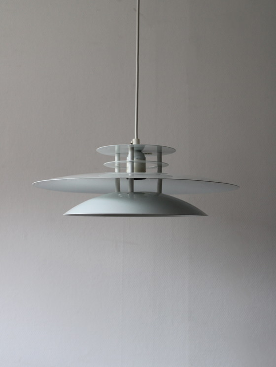 Het ontwerp is duidelijk geïnspireerd op de Scandinavische designtraditie, waarin functionaliteit en eenvoud hand in hand gaan. Ontwerpers als Poul Henningsen en andere Deense grootheden experimenteerden in deze periode met gelaagde kappen om verblinding tegen te gaan en een zachte, gelijkmatige lichtspreiding te creëren. Deze lamp sluit perfect aan bij die traditie en ademt de sfeer van het moderne design uit de jaren ’60 en ’70.