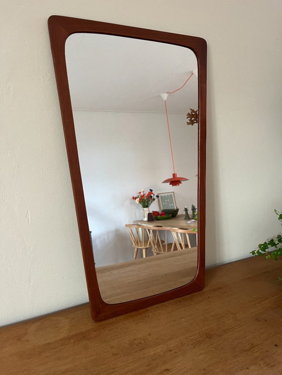 Deense spiegel, vintage spiegel, teakhouten spiegel, Deense designspiegel, mid-century spiegel