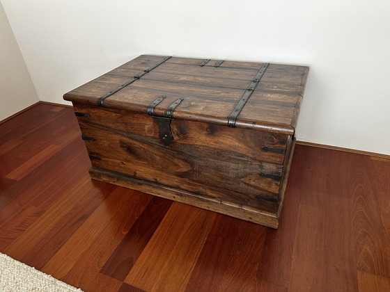 Deze prachtige vintage dekenkist is een tijdloos stuk dat zowel functionaliteit als charme toevoegt aan uw interieur. Met zijn robuuste houten constructie en metalen beslag straalt deze kist een authentieke vintage sfeer uit. Perfect voor het opbergen van dekens, kussens of andere persoonlijke bezittingen. De natuurlijke houttinten en het donkere metaal zorgen voor een warme en uitnodigende uitstraling. Voeg een vleugje geschiedenis toe aan uw huis met deze unieke dekenkist.