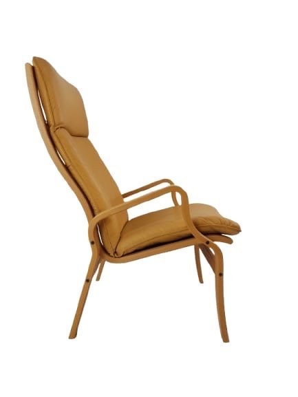Deze vintage fauteuil van Ostergard is uitgevoerd in een prachtige mosterdgele leren bekleding, gecombineerd met een elegant houten frame. Het ontwerp straalt een klassieke charme uit die perfect past in een retro of vintage interieur. De stoel biedt uitstekend comfort met zijn hoge rugleuning en ergonomische vormgeving. Een tijdloos stuk dat zowel stijl als functionaliteit toevoegt aan elke ruimte.