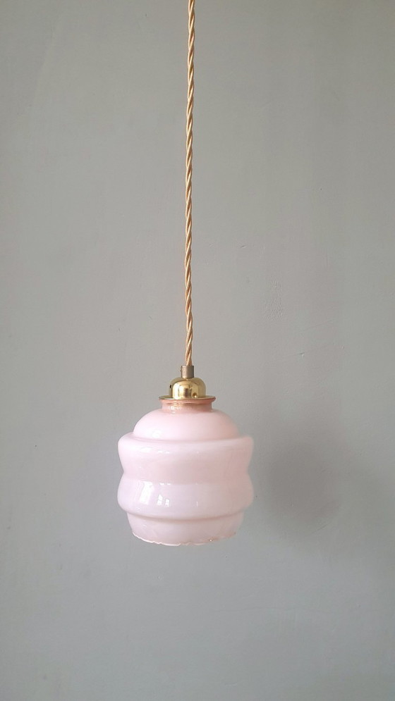 Vintage Franse Hanglamp - Rose Opaline Glas Met Decoratierand