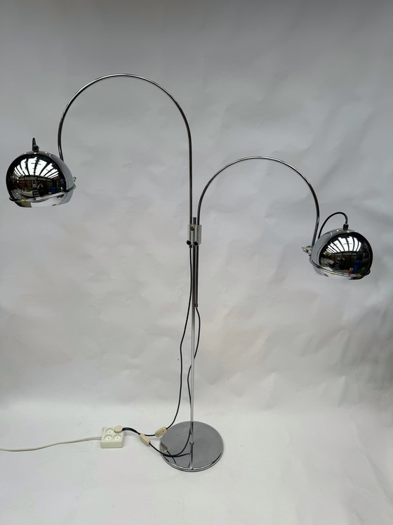 Vintage Gepo Amsterdam Chrome Eyeball lamp uit de jaren 70 - Dubbele boog, Space Age-stijl