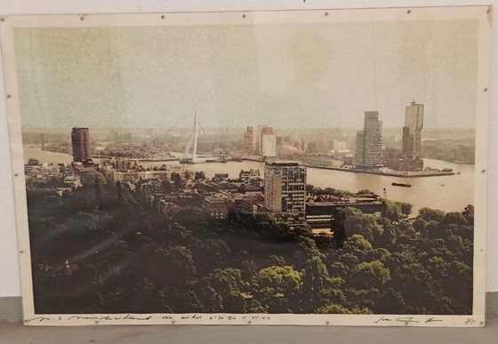 Grote ingelijste print in gemengde techniek van Rotterdam, gesigneerd en gemerkt 3/5.