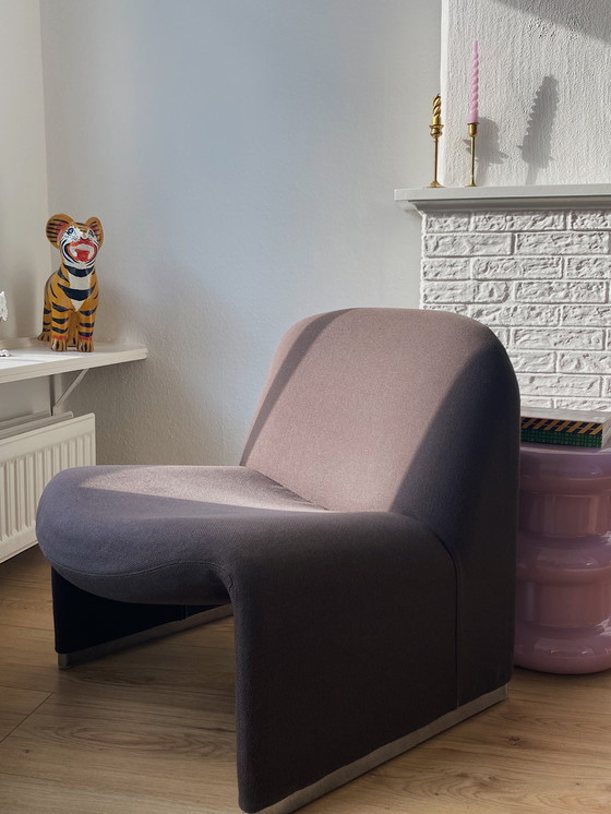 De Alky fauteuil door Giancarlo Piretti is een echte design klassieker van Castelli. Deze tijdloze stoel heeft gepolijste chromen voetsteunen en is uitgevoerd in een originele bruine stoffering.