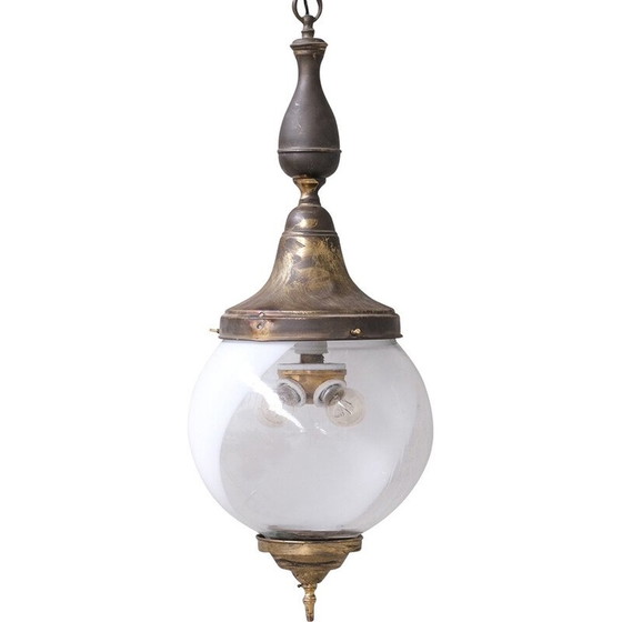 Vintage glazen en messing hanglamp, Frankrijk 1930