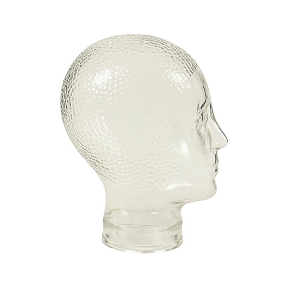 Coole vintage etalage, mannequin hoofd, transparant geperst glas met antislip noppen op de schedel, jaren 60-70.