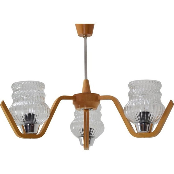 Vintage glazen kroonluchter van Drevo humpolec, Tsjecho-Slowakije 1970