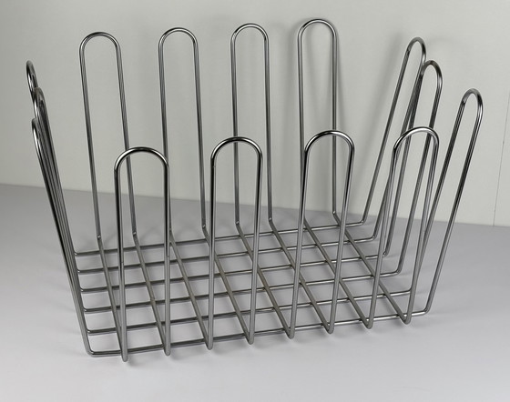 Vintage grote design draadstaal krantenbak tijdschrifthouder chroom