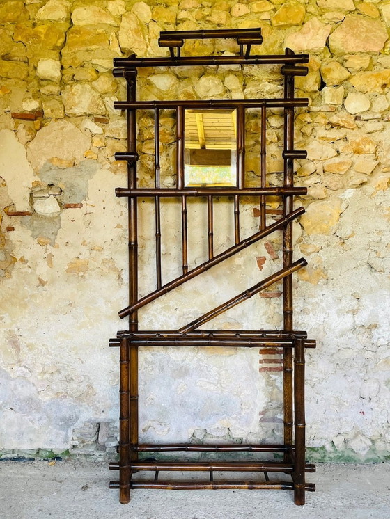Vintage halstandaard van bamboe met afgeschuinde spiegel, 1920