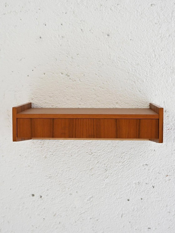 Scandinavisch teak nachtkastje met geïntegreerde lade.
