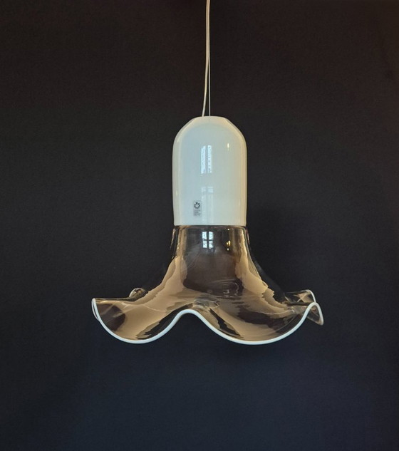 Een zeer gave hanglamp van het Italiaanse merk Leucos. De lamp is zwaar en volledig van murano glas. In de jaren 70 ontworpen door Renato Toso en Roberto Pamio. Werkelijk een prachtige designlamp in een uitmuntende staat zonder chips en/of krassen.