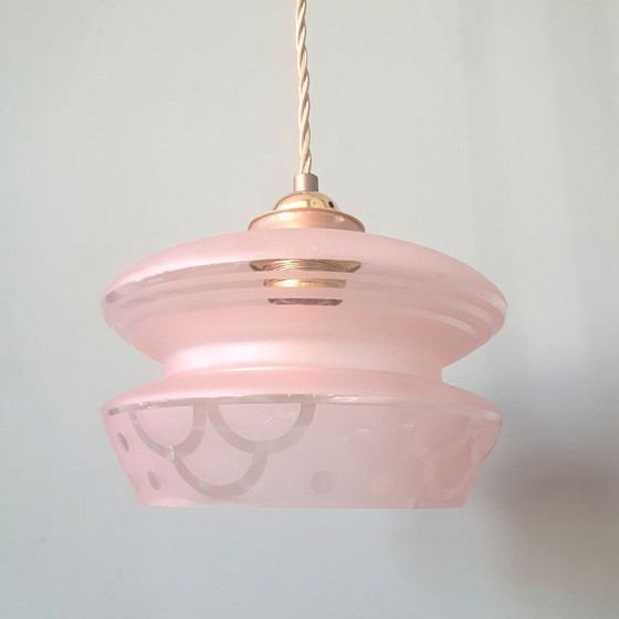 Antiek, Art Deco, Vintage, Franse lamp, glas, glazen hanglamp, glas