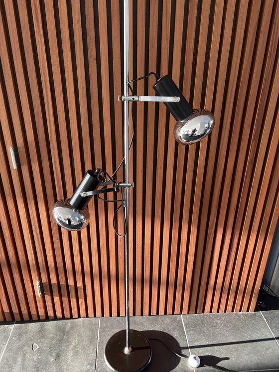 Verlicht uw ruimte met de tijdloze elegantie van deze vintage Herda vloerlamp. Deze opvallende lamp combineert moeiteloos functionaliteit met een klassiek design en is een bewijs van Herda's befaamde vakmanschap. De strakke zwarte en zilveren afwerking voegt een vleugje verfijning toe aan elke kamer, waardoor het een veelzijdige aanwinst is voor zowel moderne als traditionele interieurs.