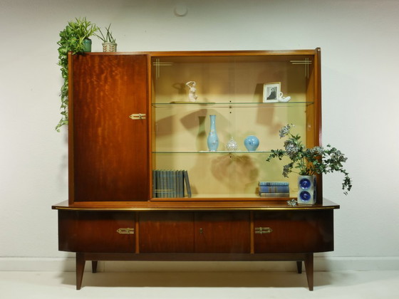 Vintage highboard / woonkamer kast met vitrinekast, jaren 60, Duitsland