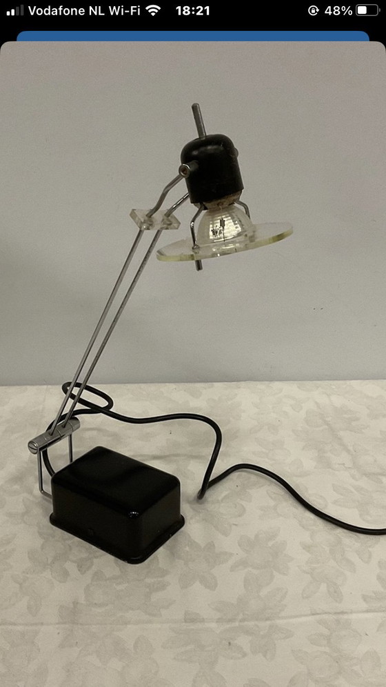 Vintage Honsel buro/tafellamp In goede vintage staat, 50er jaren. Chroom heeft wat roestvorming.