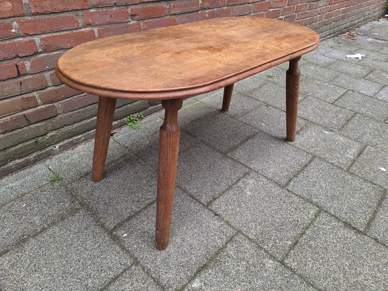Mooie salontafel / bijzettafel van hout met patina en vier gestileerde tafelpoten.