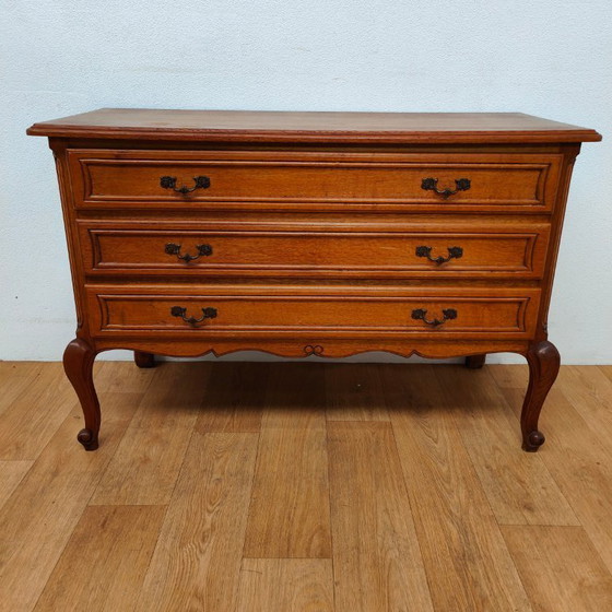 Landelijke, barok, brocante ladekast in de Queen Ann stijl. Een klassieke commode voorzien van zeer sierlijk houtsnijwerk en pootjes. Deze vintage ladekast in Louis Quinze stijl heeft drie grote lades. Lekker veel opbergmogelijkheden dus. En prima te gebruiken als badkamermeubel.