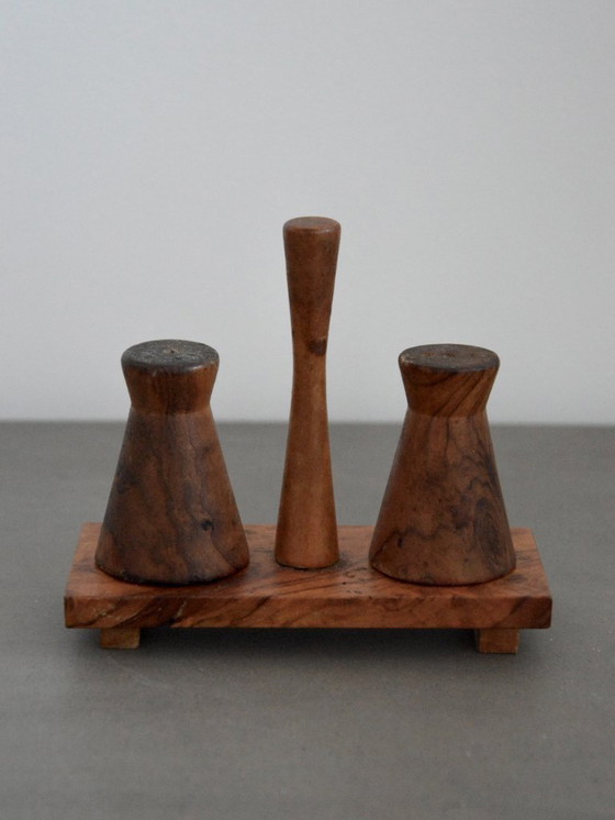 Vintage houten zout- en peperstrooiers, Scandinavisch/Brutalistisch/Mid-Century/jaren 60 design: