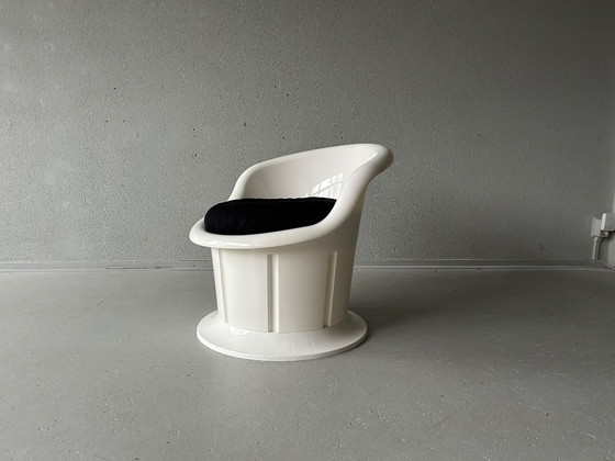 Ervaar de charme van de jaren '90 met deze vintage IKEA POPPTORP fauteuil. Dit unieke meubelstuk, vervaardigd uit gebroken wit kunststof, straalt een tijdloze elegantie uit die perfect past in zowel moderne als klassieke interieurs. De witte basis wordt prachtig geaccentueerd door een comfortabele zwarte textielkussen, waardoor een verfijnde en uitnodigende uitstraling ontstaat.