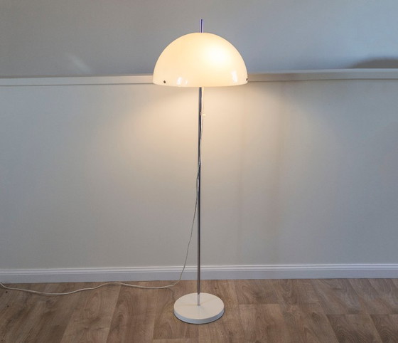 Authentieke vintage IKEA G8806 vloerlamp uit de jaren 70, identiek aan het model geproduceerd door AB Fagerhults in Zweden. Deze lamp is een prachtig voorbeeld van het populaire mushroom / paddenstoelontwerp uit het mid-century tijdperk en is geliefd onder verzamelaars en liefhebbers van Scandinavisch design.