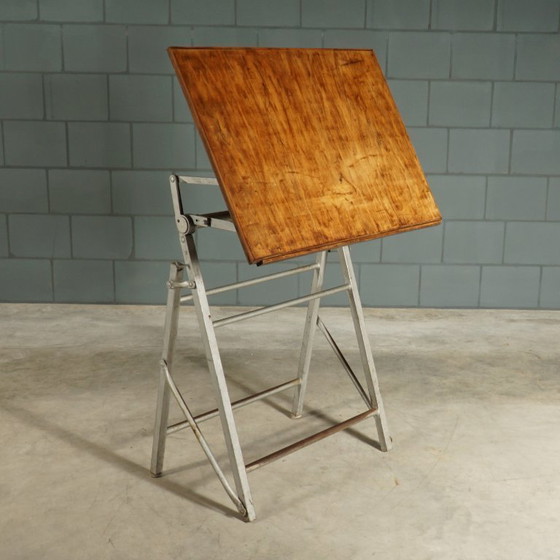 Vintage industriële tekentafel / architectentafel – jaren 50