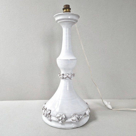 Vintage Italiaanse keramische lamp uit de jaren 50 met bloemversiering.
