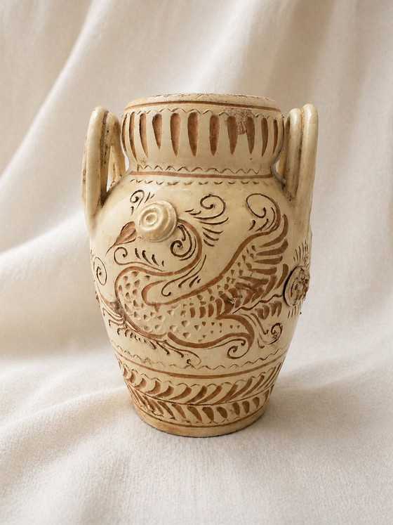 Vintage Italiaanse keramische vaas uit de jaren 1950/60 - Archaïsche griffioenversiering - W.1180