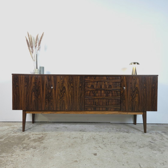 Een heel mooi origineel vintage jaren 60 - 70 Duits sideboard / dressoir / TV meubel in de Scandinavische (Deense) stijl. Uitgevoerd in prachtig palissander (rosewood) houtfineer met hele mooie nerftekeningen!