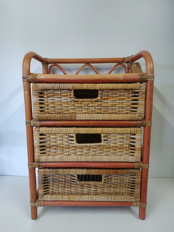 Vintage Jaren 70 Rotan Rattan Boho Style Bijzetkastje Ladekastje