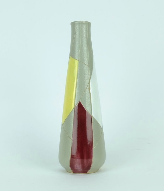 Elegante Jasba vaas met abstract decor "Verona". Modelnr. 599, ontwerp Cilli Wörsdörfer. Zie ook: "Horst Makus, 50er Jahre Keramik" (1e boek), p. 51 en 99.