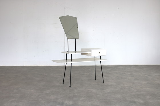 Vintage Kaptafel | Kastje | Jaren 60 Period | Jaren 60 Design | Onbekend Condition | Goed | Lichte Gebruikssporen Size | 130 x 100 x 40 (HxBxD) Details | Hout; Metaal; Glas; Item Number | 2772