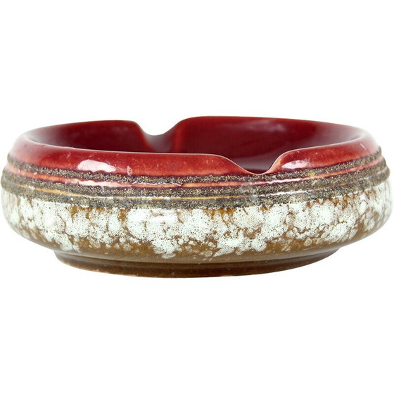 Prachtig stuk mid-century design. Dit is een asbak van keramiek met een elegant ontwerp en een interessante kleurencombinatie. Diep donkerrood in glazuurafwerking wordt gemengd met het bruine en ruwe oppervlak. De mix van materialen maakt de asbak makkelijk in gebruik en schoon te maken, en makkelijk om verliefd op te worden. Uitstekende staat zonder enige slijtage. Geproduceerd in Tsjecho-Slowakije in de jaren 1960.