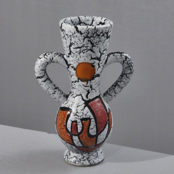 Vintage keramische vaas met kubistische abstractie op lava email 1950 Vallauris