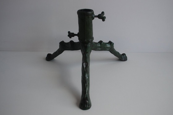 Massieve en stabiele standaard van gietijzer, metaal. Gedecoreerd in de vorm van een boomstam met drie afneembare poten.