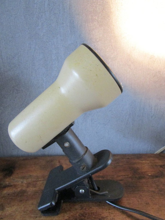 Vintage klemlamp te zijn uit de jaren '60 of '70,vaak aangeduid als een "wasknijper" lampje vanwege de karakteristieke klem