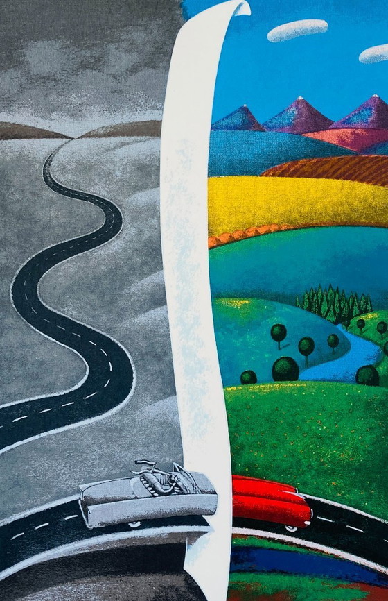 Een kleurrijk vintage kunstwerk van waarschijnlijk de kunstenaar Ton Paay. Het werk is handgesigneerd door de kunstenaar en verkeert in uitstekende conditie.
