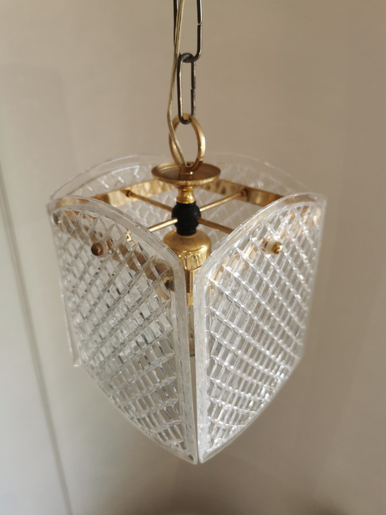 Prachtige kroonluchter van kristal en messing, Italiaans design uit het midden van de 20e eeuw.