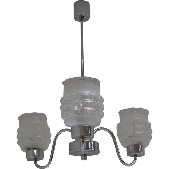 Vintage kroonluchter van chroomglas, Tsjecho-Slowakije 1970