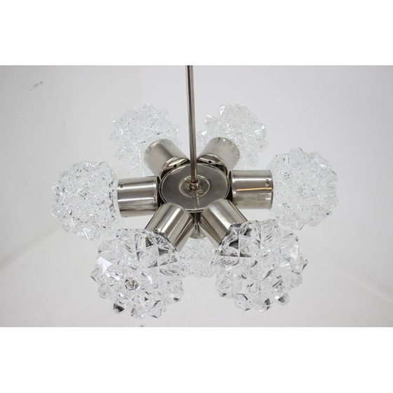Vintage kroonluchter van glas en staal van Kamenický Šenov, Tsjecho-Slowakije 1960