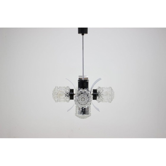 Vintage kroonluchter van staal en glas, Tsjecho-Slowakije