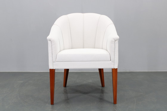 - Zorgvuldig gerenoveerd - Nieuw gestoffeerd - Stevig en stabiel - Beuken poten - Hoogte zitting 47 cm