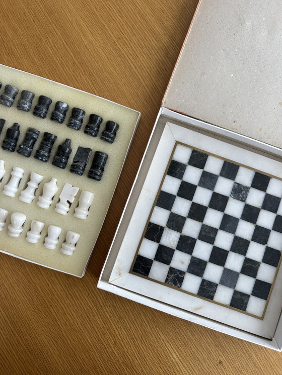 In goede staat met lichte sporen van gebruik passend bij de leeftijd. Sommige pionnen hebben we chipjes eraf.