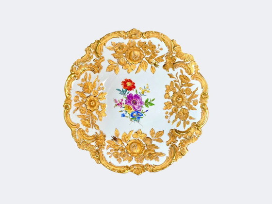 Vintage Meissen porseleinen bord met bloemmotief en verguldsel - Duits Leuteritz E.A. porseleinen tafelstuk in rococostijl