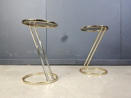 Vintage messing bijzettafels - set van 2, jaren 1970