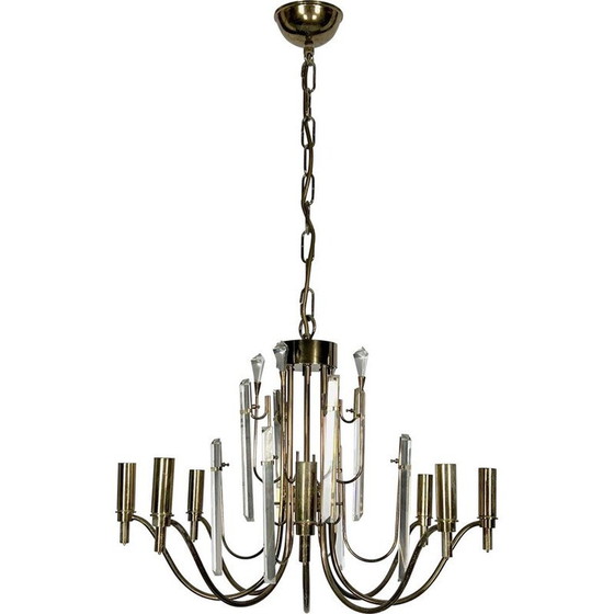 Vintage messing en glazen Stilkronen kroonluchter, Italië 1970