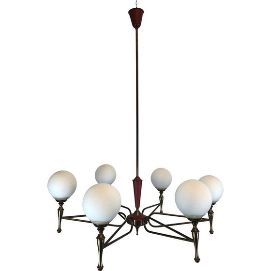 Vintage messing en opaline kroonluchter van Stilnovo, Italië 1950