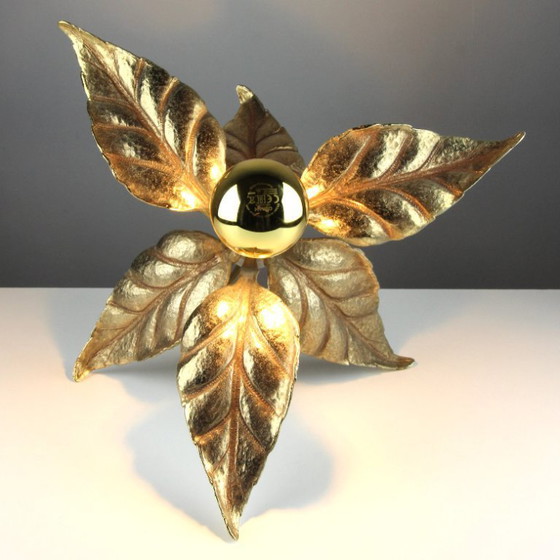 Vintage messing tafellamp in bladvorm – Hollywood Regency – Massief / Daro-stijl – België, jaren 70