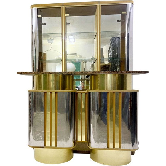 Image 1 of Vintage metalen bar met spiegel, Italië 1970