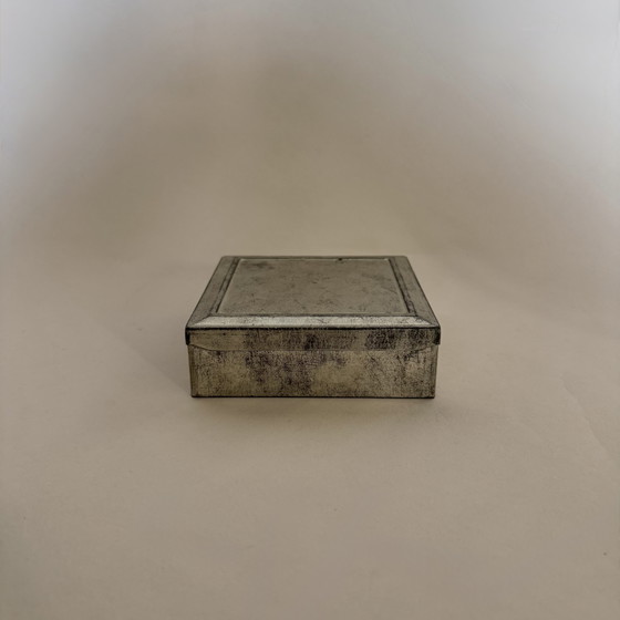 Een elegante vintage doos met een sober, puur ontwerp, typisch voor de verfijnde gebruiksvoorwerpen uit de jaren 60.