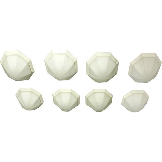 Deze acht plafond- of wandlampen zijn ontworpen in de jaren 1970 en geproduceerd in de jaren 2000 door Glasshütte Limburg, Duitsland. Ze zijn gemaakt van metaal en glas. Goede staat.